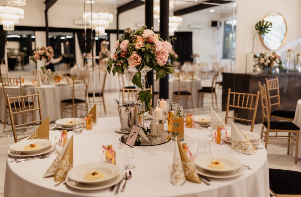 Indywidualną, dodatkową dekorację stołów oraz sali, według własnych upodobań, przygotowaną przez profesjonalnych dekoratorów,